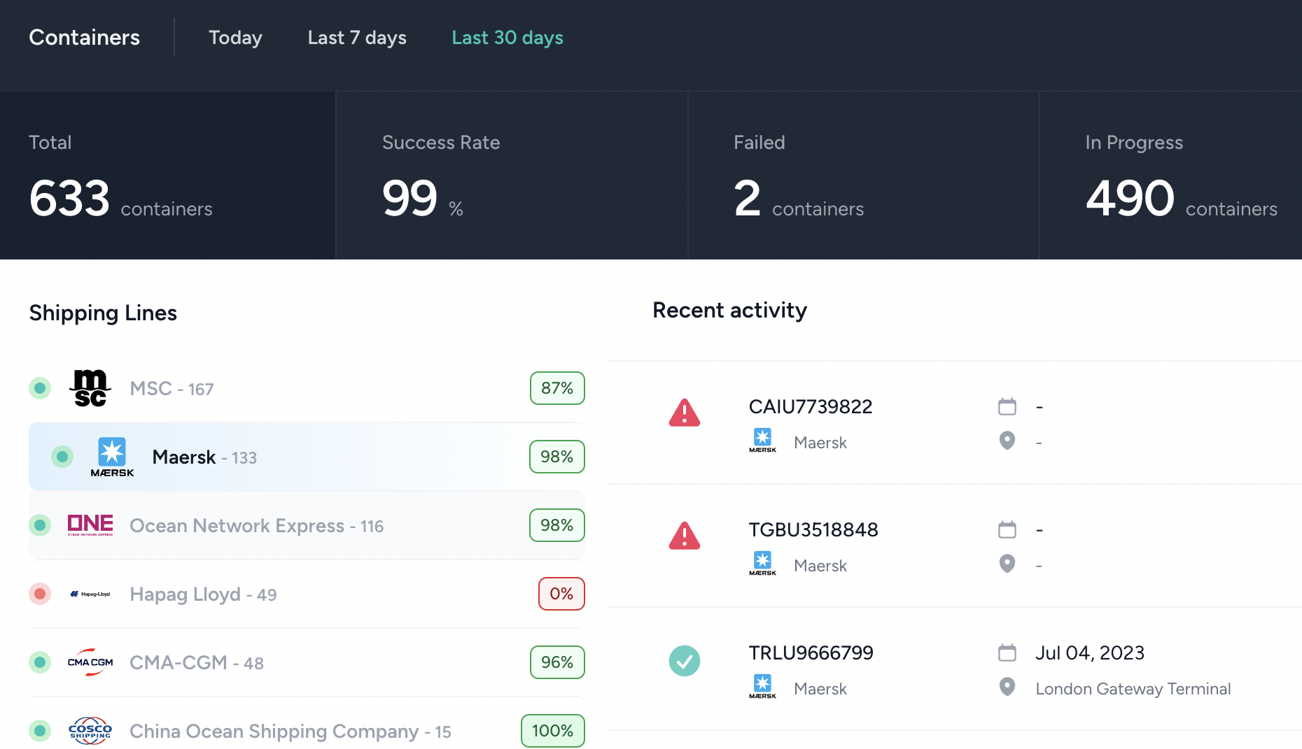 - Data mapping: ContainerChase maps your data to shipping line, air line, and port handler data, providing accurate and up-to-date information.